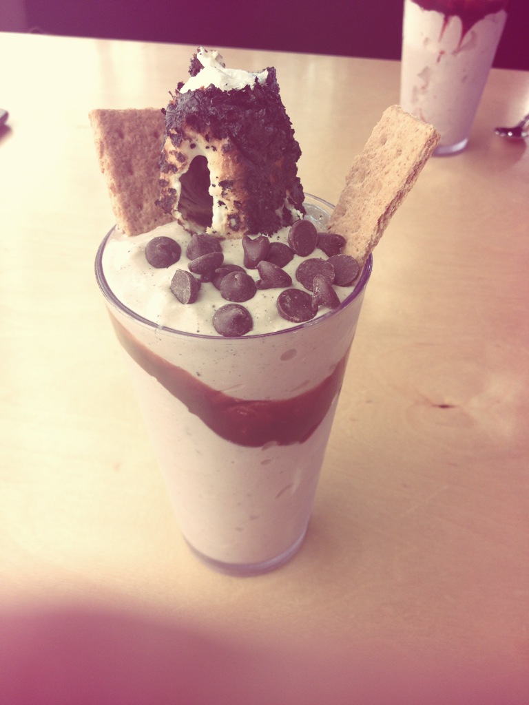 It’s about as crazy as it looks. Pretty much a heart attack waiting to happen. But I enjoyed every bit of that burger (even if I had to save the other half for later.) They also have milkshakes like these S’mores milkshakes.